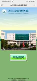 关注“九江学院图书馆”微信公众号(账号“jjxy_tsg”),点击右下角“读者服务——新生入馆教育游戏闯关”进入。