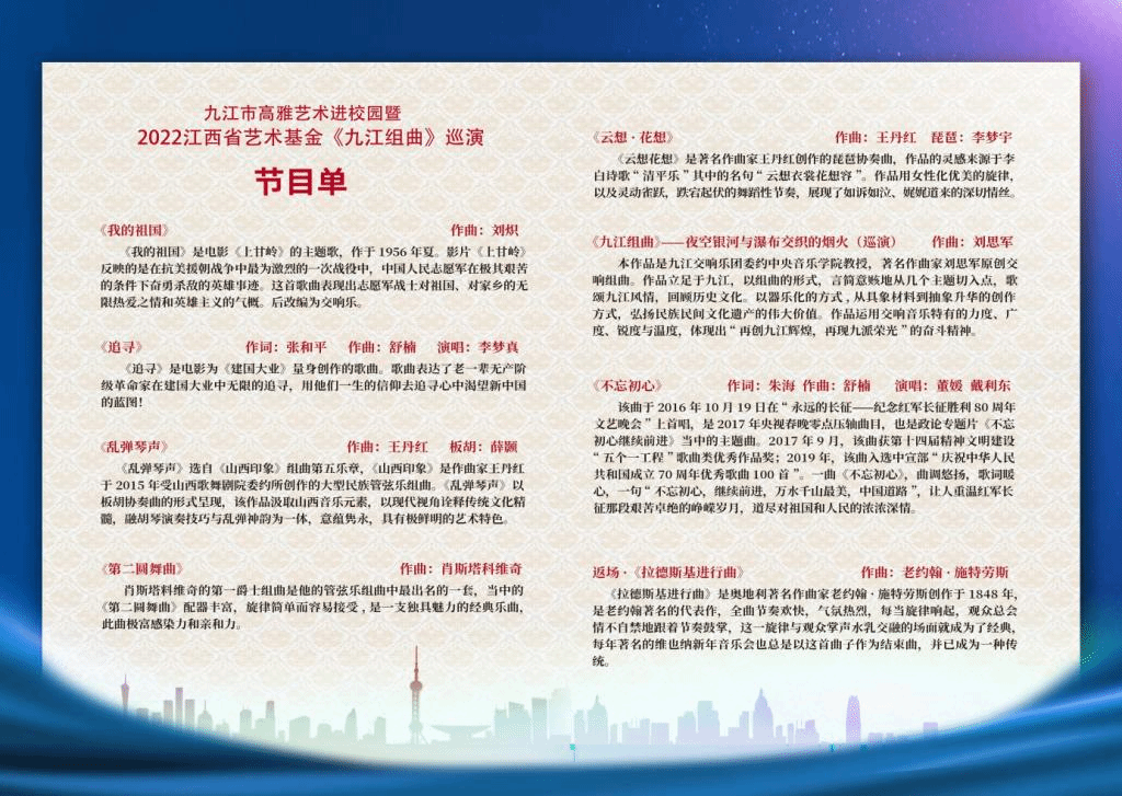 附:九江市高雅艺术进校园暨2022江西省文化艺术基金项目《九江组曲》巡演音乐会节目单