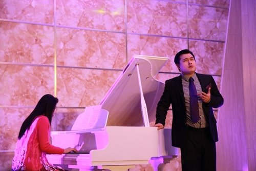 著名德国抒情花腔女高音歌唱家莎拉·莱恩格勒女士,毕业于著名的奥地利维也纳音乐学院。她在晚会上独唱了一首《你是我挚爱的人》的歌曲,由哈根音乐学校的校长施罗德为其钢琴伴奏。著名男中音歌唱家乌尔夫·梅德勒先生,毕业于奥地利萨尔茨堡音乐学院,是一位活跃在欧洲各大小歌剧院的舞台上的著名歌者。他则演唱了选自瓦格纳歌剧《唐豪瑟尔》咏叹调“晚星颂”,由德国著名的钢琴家和钢琴教育家罗兰·普洛尔为其钢琴伴奏。罗兰·普洛尔还随后为莎拉·莱恩格勒女士和乌尔夫·梅德勒先生重唱——选自莫扎特歌剧《唐璜》的《让我们携手同行》伴奏,包括晚会最后的三重唱《今夜无人入睡》的钢琴伴奏。熊柯嘉先生、莎拉·莱恩格勒女士和乌尔夫·梅德勒先生共同演唱了《图兰朵》中的选段《今夜无人入睡》。对于观众来说,这首曲子算是耳熟能详了,闻听过很多歌唱家演唱,似乎多了一份共鸣。其中,体育学院的同学还表演了健美操《青春活力》,正如同他们的青春激情澎湃,充满活力。