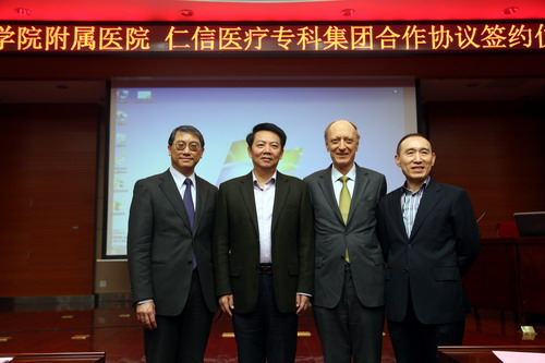 仪式开始前,校党委书记郑翔会见了香港仁信医疗专科集团专家组一行,与他们举行了亲切友好的交谈。仪式结束后,校领导及临床医学院/附属医院领导与香港仁信医疗专科集团专家组一行合影留念。