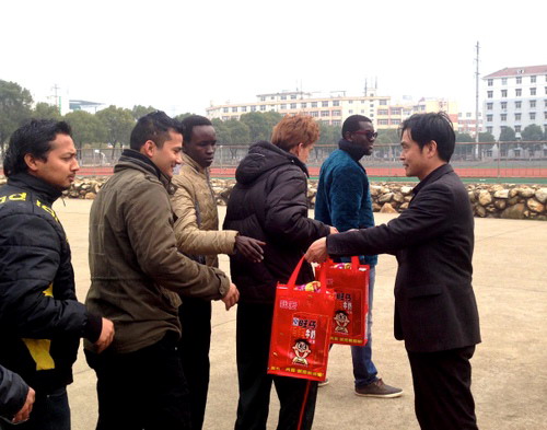 2月19日下午两点半,近百名各国留学生欢聚在留学生宿舍旁广场上,共同庆祝中国羊年新年的到来。杨耀防副校长给在校留学生送上了温暖而深情的新年祝福,他表示每逢佳节倍思亲,在校的留学生不仅仅要在九江学院欢度中国传统春节,也要向远在家乡的父母亲人问好,送上来自中国、来自九江学院的问候和祝福。他同时祝愿留学生们春节、寒假期间生活愉快、平安幸福!并鼓励同学们在新的一年里积极向上、努力学习,在学习生活各个方面都更上一层楼。