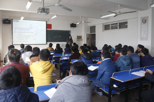 甘筱青校长、纪岗昌副校长来到竞知楼,听取了理学院沈红博士讲授的《大学物理》课程。沈红是学校新引进的博士。听课结束后,甘校长对沈红博士的授课进行了点评,并与她探讨了教学的方法、技巧。