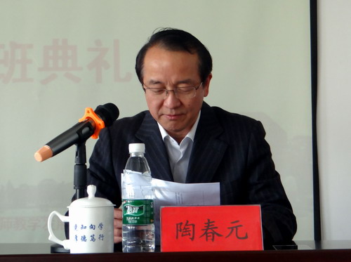 典礼上,陶副校长宣读了《九江学院2014年新进教师研习营活动的通知》,介绍了活动内容、强调了活动纪律及考核要求,希望各位青年教师以此次培训活动为契机,向教学名师学习经验,和同事交流教学方法,从而进一步提高自身综合素质,提升教学水平。