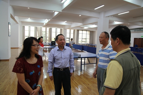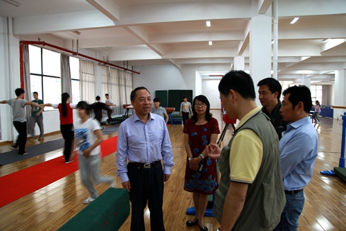 随后,甘校长还到体育学院体操训练教室,听了乒乓球课和健美操课,并向体育学院院长王勤了解体育专业毕业生就业等情况。