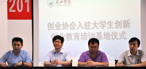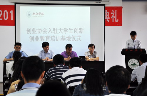 创业导师代表电商学院姚胜辉老师做了发言,他分享了指导学生团队设计校园文化纪念品——鹿小白的经验。创业协会老会员、入驻我校创新创业教育培训基地的企业代表、我校校友九江微盟公司总经理王堃分享自己的创业之路,表达了对学校的感恩之情。创业协会入驻仪式上,九江学院大学生创业者协会向广大青年创业者们发出倡议。号召大学生抢抓机遇,加快发展我们自己,快速成长。