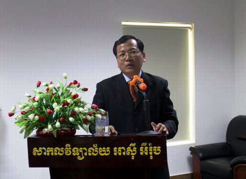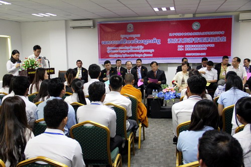 谢莫尼勒院长在讲话中和大家一起回顾了孔子学院的发展历程。自学院成立以来,向柬埔寨社会推广国际化汉语教学,为柬埔寨的学生和官员们提供了众多留学中国的机会,同时在拉动中国游客到柬埔寨旅游方面也做出了积极的努力,孔子学院也成为了中柬友谊的桥梁。