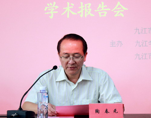 陶副校长在报告会上发表了热情洋溢的致辞,他首先代表学校对九江市有关单位的领导和专家表示热烈的欢迎!陶副校长说,习近平总书记在7月30日强调,要深入开展中国人民抗日战争研究,要坚持正确历史观、加强规划和力量整合、加强史料收集和整理、加强舆论宣传工作,让历史说话,用史实发言。今天,九江市史志办、历史学会与我们政法学院联合在美丽的八里湖校区举办纪念抗日战争胜利70周年学术报告会,大家聚集一起研讨抗战历史,发扬抗战精神,铭记历史、缅怀先烈,研讨会紧贴时代主题,意义十分深远。