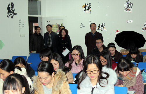 吴桃娥副校长和杨耀防副校长来到竞知楼、向学楼、竞秀楼等检查学生到课情况,向师生表示新学期的问候,希望同学们新学期学习愉快、生活愉快。王万山副校长对浔东校区新学期的第一课教学秩序进行了检查,听取了浔东校区负责人的工作汇报。陶春元副校长到外国语学院检查第一课情况,随后来到外国语学院教工活动中心和艺术中心视察。杨焱林副校长来到庐峰校区检查第一课情况。校纪委魏立平书记到八里湖校区检查了第一课学生上课的基本情况,他向师生表示新年问候,鼓励大家好好学习,并送上元宵佳节的祝福!