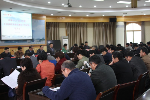 校招生与就业处肖国丰处长讲解说明了我校《迎接全省高校毕业生就业工作实施方案》和《就业工作评估指标体系、信息采集及任务分解表》。