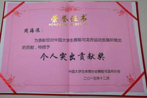 中国大学生体育协会赛艇与龙舟分会年会于2016年1月在青岛大学闭幕。九江学院荣获中国大学生体育协会赛艇与龙舟分会“突出贡献院校”称号,龙舟队主教练周海浪被授予“个人突出贡献奖”。