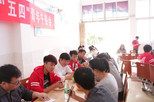 今年5月4日,正值纪念“五四”运动97周年。校团委、后勤处饮食服务中心在学生二食堂联合举行青年之声·“五四”青年午餐会。副校长王万山出席活动并与同学们共庆五四,共话成长,共进午餐。校团委、饮食服务中心负责同志、学生代表共计30余人参加了午餐会。午餐会由校团委书记闫来英主持。