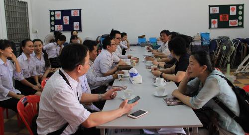 5月20日下午,湖北省人大常委会张岱梨副主任率领湖北省人大代表团一行8人,到访柬埔寨王家研究院孔子学院暹粒省吴哥高中孔子课堂。孔子学院院长谢莫尼勒阁下(H.E.CHEA Munyrith)、吴哥高中校长任诺特先生(Mr. RIN Lot)及孔子课堂全体教师志愿者热烈欢迎代表团一行并在会议室座谈。