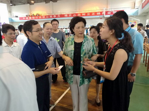 就业洽谈会期间,副校长吴桃娥、纪岗昌、王万山、校纪委书记魏立平在招生与就业处处长肖国丰、副处长罗双凤等的陪同下,逐一到各企业、单位的招聘点与各企业、单位的负责人进行交流和慰问。