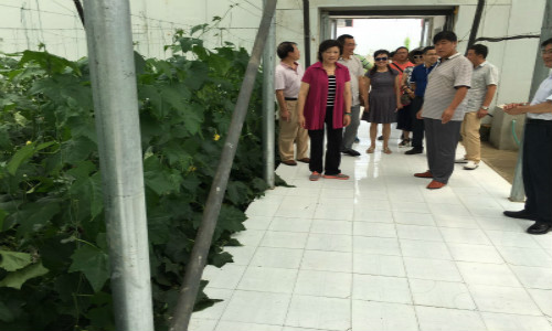 随后,在校友周广超的联系下,吴桃娥副校长一行来到浦南现代农业园区基地兆绿生态农庄参观江苏最大、科技含量最高,种植技术最先进的蔬菜大棚。采用现代物联网技术加滴灌节水系统,将丝瓜大棚的价值使用到最大。吴副校长看到现代化农业,表示农业产业将大有可为,我们学校也有很多相关专业,可以与我校进行校企合作。
