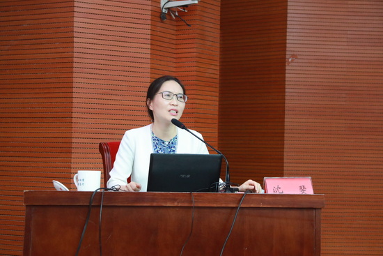 会上,沈斐教授为大家作了题为《读烈士诗词家书感悟伟大建党精神》的专题辅导报告。沈教授从革命烈士何孟雄的一首小诗《狱中题壁》开始,娓娓道来,讲述了早期共产党人为了革命事业、为了美好未来,舍小家为大家,百折不挠、前赴后继,用生命诠释初心使命的故事。她用经典详实的案例,生动流畅的语言、真切细腻的情感,用忠诚、奋斗、牺牲三个篇章,再现了革命先烈舍生忘死的崇高气节和报国为民的炽热情怀,深刻诠释了何为忠诚、怎样奋斗、为何牺牲,催人泪下、发人深省。