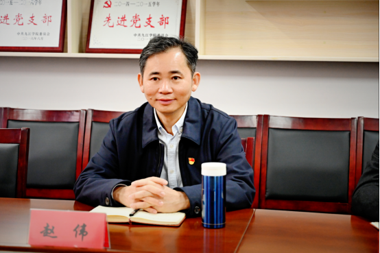 座谈中,赵伟一边听取发言,一边与教师们交流互动。他高度肯定了马克思主义学院思政课建设所取得的成绩,并对马克思主义学院的下一步发展提出了要求:要严把思政课教师教学入口关,全力引进优秀人才,进一步优化我校师资队伍年龄结构,努力建设一支高水平、高素质的思政课教师队伍;坚持“外引内培”,与省内外专家学者加强合作,培育打造优秀教科研团队,提升教科研水平;要结合学校“十四五”发展规划,立足学院发展实际,加强顶层设计,谋划好学院未来发展方向;要努力挖掘本地红色资源,优化基础配套设施,充分发挥学科优势性,深化思政课堂丰硕成果。