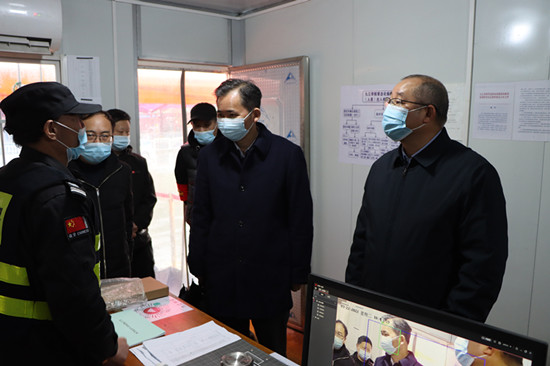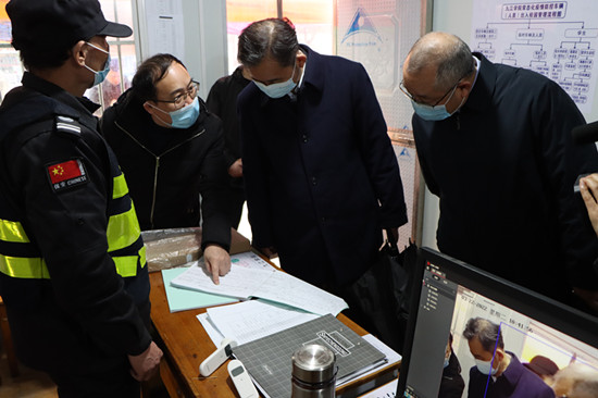 赵伟、陈小林一行首先来到学校南门口值班室,仔细询问值班人员值守情况、认真检查校外来访人员登记本。赵伟对值班人员的辛勤付出表示了感谢,再三叮嘱值班人员要注意自身防护。