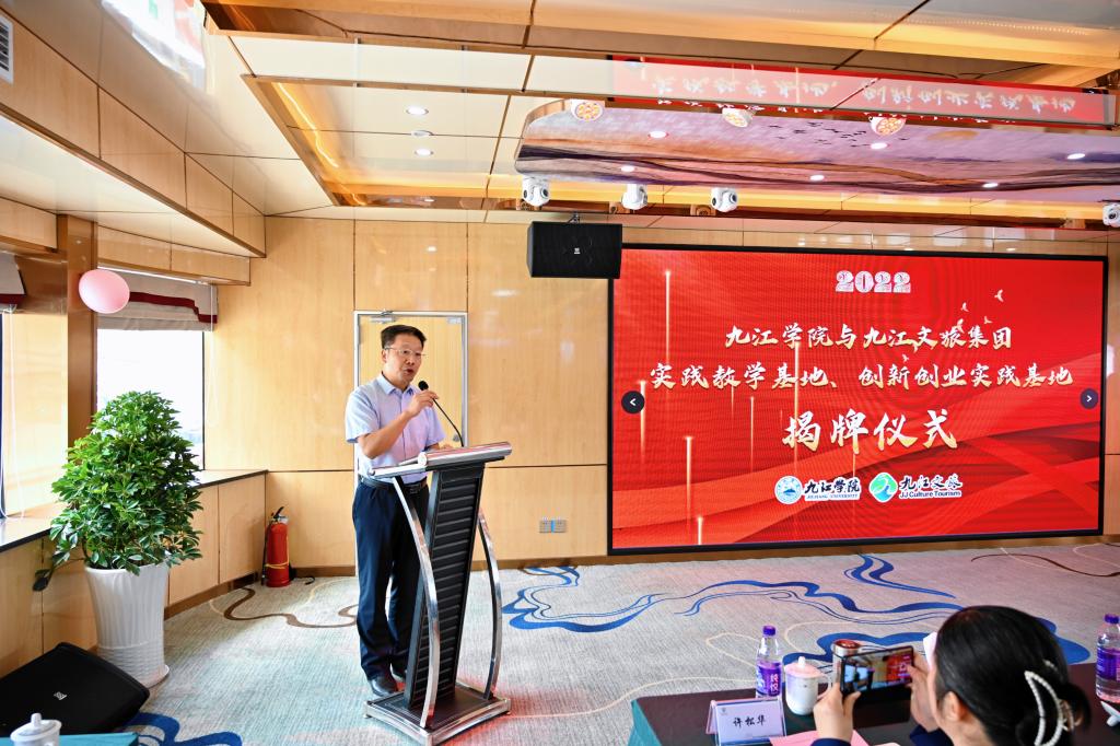 揭牌仪式上,严平对九江市文旅集团长期以来支持九江学院的发展表示感谢,并介绍了学校的发展历程、办学特色、专业设置等基本情况。严平表示,九江学院历来十分重视学生社会实践教育活动,努力协调各方社会资源为学生搭建实践平台,建立“实践教学基地”和“创新创业实践基地”,帮助大学生提高就业创业能力。此次实践教育基地和创新创业实践基地的建立,为九江学院师生搭建了一个很好的实践平台,对于实现校企资源的有机结合和优化配置,提升学校的教育教学水平和人才培养质量,助推学校高质量服务地方经济社会发展具有重要意义。