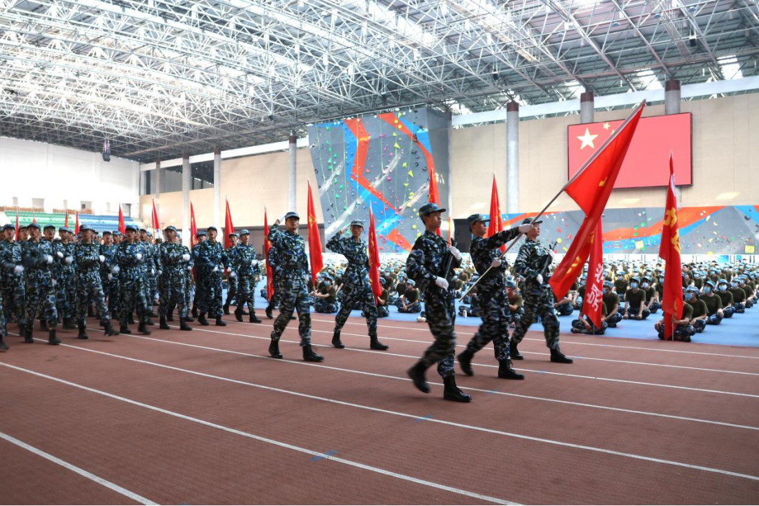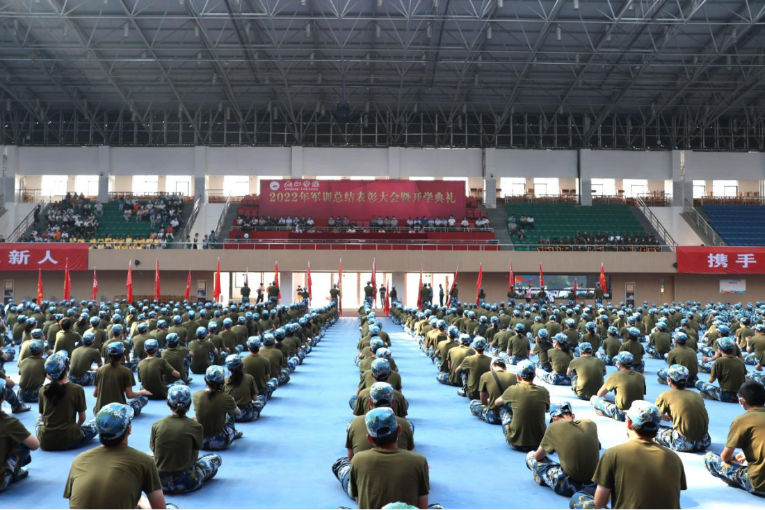 9月30日上午,我校在主校区体育训练中心召开2022年新生军训总结表彰大会暨开学典礼。校党委书记赵伟出席大会,并代表学校向武警九江支队赠送锦旗。校长陈小林致辞,勉励2022级新同学在最美的时光奋斗出最闪亮的青春,成就最美好的自己。