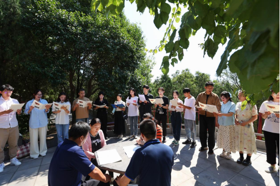 两校师生在美丽的郑州大学校园内合影留念