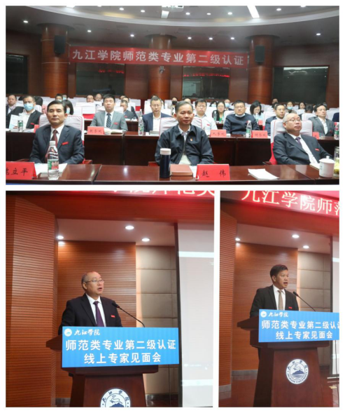 见面会上,校长陈小林代表学校向出席本次师范类专业认证线上见面会的教育部专家和省厅领导表示热烈的欢迎和衷心的感谢。陈小林指出,九江学院是赣北地区唯一一所综合性本科院校,学校承继师范教育传统,持续深化教师教育改革,探索师范教育发展路径和师范专业人才培养模式,积极推进教师教育工作创新发展。近年来,学校师范生培养质量逐年提高,师范类专业就业率稳步提升,为地方教育事业发展作出了应有贡献。他表示,通过此次师范类专业认证,恳请各位专家对我校师范专业建设进行全面会诊把脉,给予帮助指导。同时要求学校各部门、各学院全力配合专家组开展好各项工作,并虚心接受各位专家的指导意见,认真抓好后期整改,努力构建高水平教师教育体系,为推进区域教师教育事业振兴发展,办好人民满意的教育作出新的更大贡献!