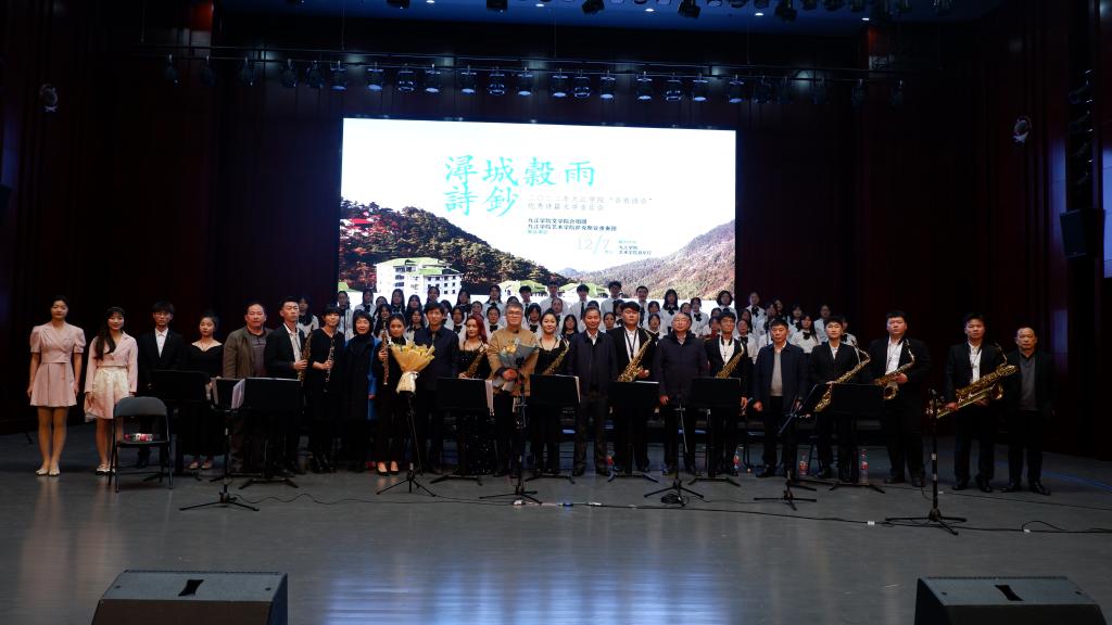 谷雨如诗冬来唱,中国梦里春意闹。12月7日晚,由我校文学院、艺术学院联合主办,文学院合唱团及艺术学院萨克斯管重奏团联合打造的九江学院“谷雨诗会”优秀诗篇文学音乐会在艺术学院音乐厅顺利举行。校党委书记赵伟、校长陈小林、副校长查振华、纪委书记李广欣、九江市台办主任桂白丽,以及校党政办、学生处、国际交流处、文学院、艺术学院负责人和师生代表共同欣赏了这场音乐会。