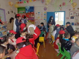 管理学院组织志愿者在虹康福利院教孩子们唱歌、剪纸