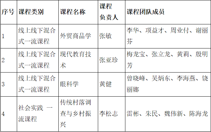 4月11日,教育部公布了《关于第二批国家级一流本科课程认定结果的公示》,我校《外贸商品学》《现代教育技术》《眼科学》《传统村落调查与乡村振兴》4门课程列入其中,这是继获批2门首批国家级一流本科课程后,学校在课程建设成果方面又一重大进展。目前,学校共获批国家级一流本科课程6门,省级一流本科课程67门,省高校共享育人课程8门,省高校课程思政示范课程3门。
