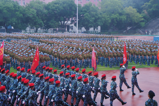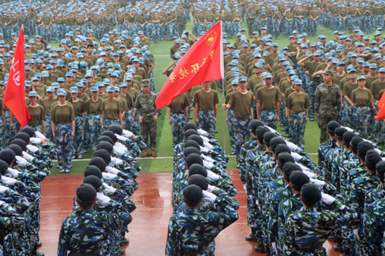 上午8:30,在国歌慷慨激昂的旋律中,鲜艳的五星红旗冉冉升起,拉开了军训总结表彰大会的帷幕。