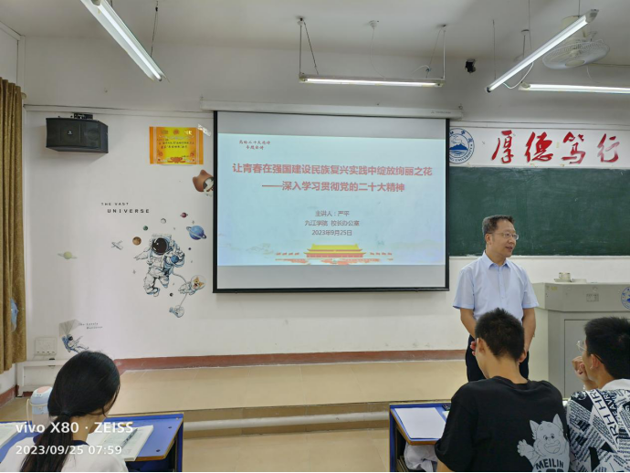 9月25日,我校2023级新生迎来了进入大学后的第一课。校领导李明斌、陈小林、王万山、夏启国、严平、查振华、李广欣、王殿元、李松志走上讲台,围绕深入学习贯彻党的二十大精神、习近平总书记视察江西重要讲话精神等内容,为新生讲授了大学第一堂思政课,勉励广大新生奋进新征程、建功新时代,为实现中华民族伟大复兴贡献青春力量。