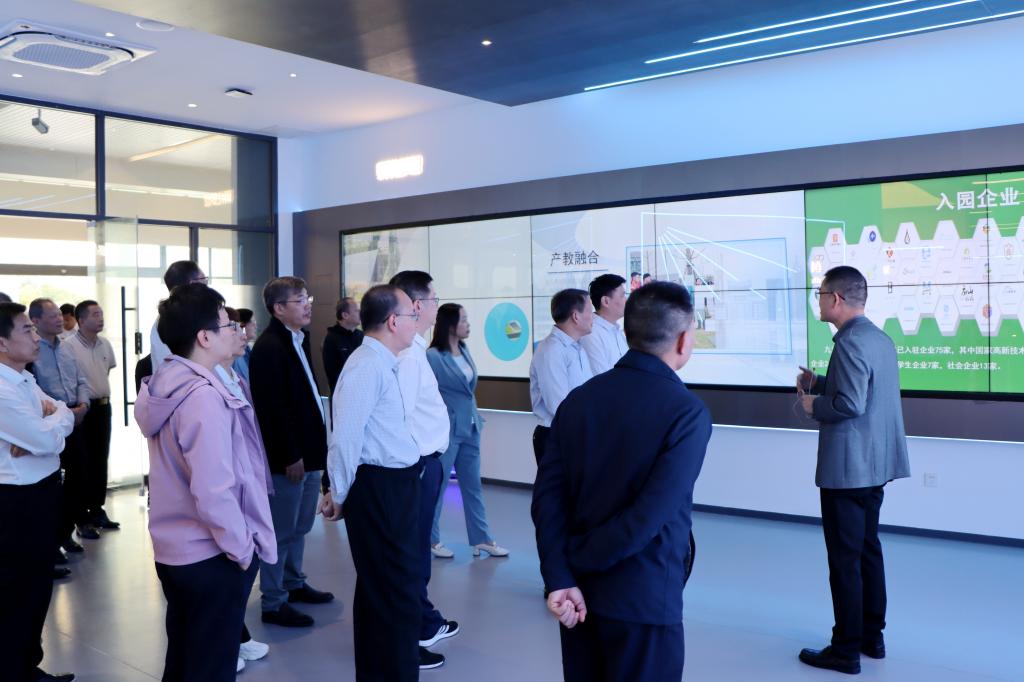 在大学科技园一楼大厅,进修班学员一行观看了我校大学科技园宣传片,听取了大学科技园负责人的情况介绍,参观了大学科技园科技展厅,实地考察了部分在园企业。进修班学员对我校深化校政企对接与合作,促进产学研深度融合,着力提升学校服务地方发展能力和综合办学实力给予了高度评价,希望学校坚持党建引领、立德树人,在应用型人才培养、协同创新技术服务、助力乡村振兴等方面接续奋斗,再建新功,努力为区域经济社会高质量发展贡献力量。