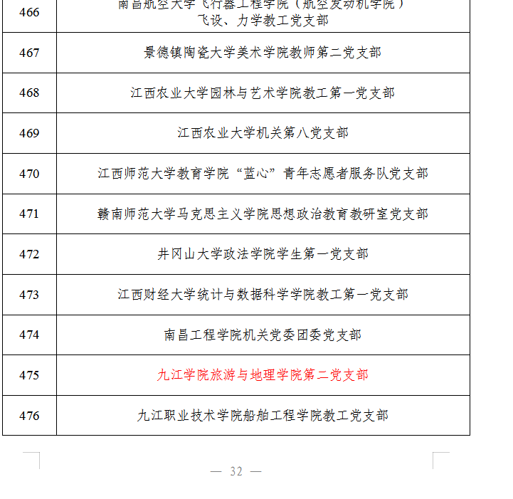 3月18日,教育部思想政治工作司下发《关于第四批新时代高校党建示范创建和质量创优工作遴选结果的公示》,我校旅游与地理学院教工第二党支部入选第四批“全国党建工作样板支部”培育创建单位。
