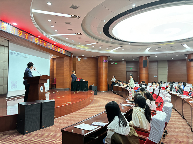 在逸夫图书馆报告厅,马军院士作了题为《基于新质生产力的长江流域城乡绿色低碳发展思考与技术进展》的报告。他深入探讨了碳中和愿景下长江流域城乡发展所面临的挑战,并重点阐述了长江流域城乡绿色低碳生态环境构建思考以及绿色低碳技术研究的最新进展。