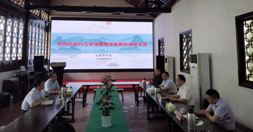 随后,双方在白鹿洞书院进行了座谈。李明斌回顾了九江学院和庐山市特别是白鹿洞书院之间的长期友好合作,对已取得的丰硕成果表示肯定。袁勇对九江学院长期以来对庐山市经济社会发展的支持表示感谢,并介绍了庐山市文化旅游发展概况。双方着重就加强校地双方合作,共同传承弘扬白鹿洞书院文化进行深入交流,达成多项共识。