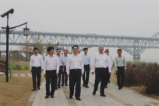 在实践研学中,学校党委理论学习中心组的同志们循着习近平总书记亲临九江考察指导的足迹,先后来到长江国家文化公园九江城区段、中国石化九江分公司,通过重走路线、观看视频、听取讲解等方式一路走、一路看、一路听、一路悟。