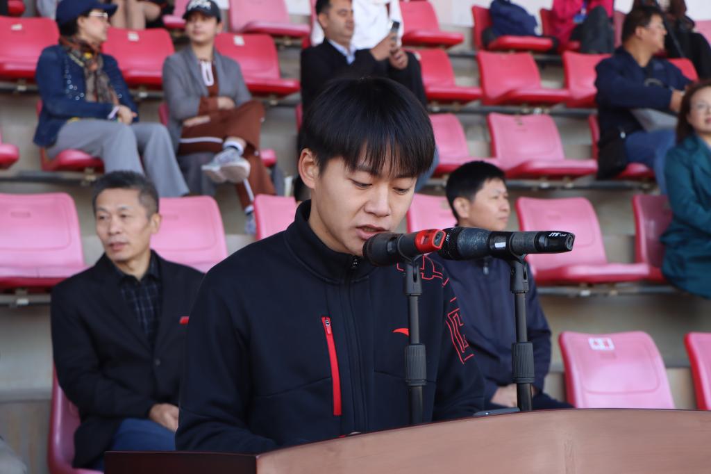 开幕式上,裁判员代表、体育学院的盛以福老师和运动员代表、文学院的黄达同学分别宣誓,表示将严守规则,公平裁判;运动员们也将全力拼搏,勇攀高峰。