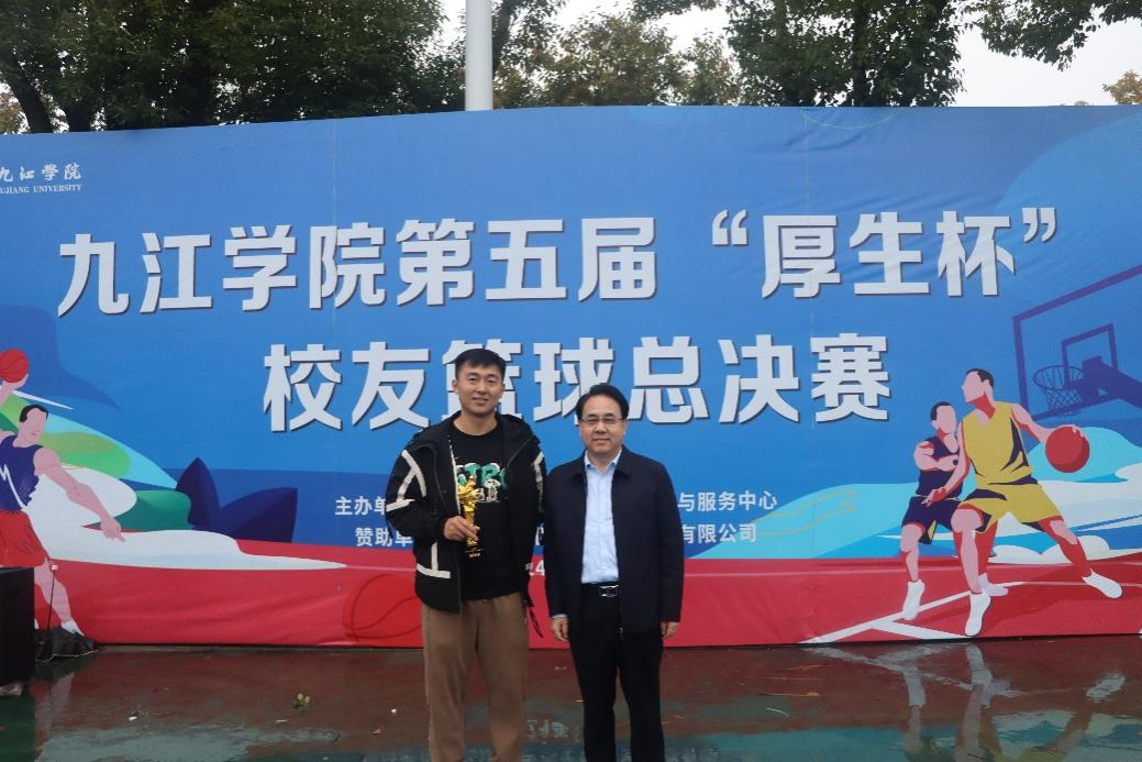 金秋十月,天高云淡。10月26日下午,九江学院第五届“厚生杯”校友足球、篮球总决赛在九江学院北区足球场和濂溪区篮球公园顺利举行。校党委书记李明斌,校党委委员、副校长、校友会会长查振华到场观看比赛。李明斌为校友足球、篮球总决赛冠军球队,“最有价值球员”以及“MVP”颁发奖杯与锦旗,查振华为校友足球、篮球总决赛亚军球队颁发奖杯与锦旗,并依次为两场比赛开球。