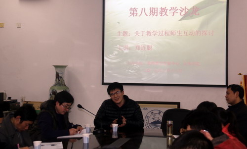 3月19日下午,由教师教学发展中心与文传学院联合主办的第八期教学沙龙“关于教学过程师生互动的探讨”在文友楼120举行。本期沙龙由学校优秀青年教师郑连聪主讲,30余名老师参与了交流讨论。