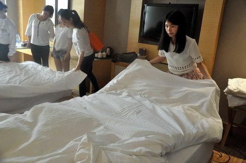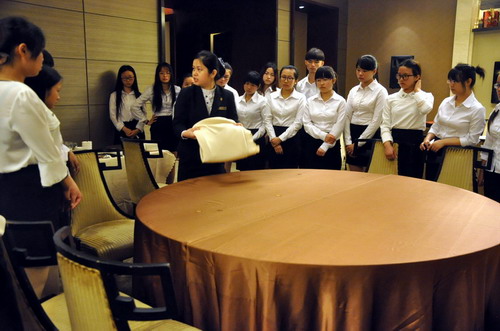 在随后的一周时间里,酒店派出专业团队协助带队老师带领学生了解酒店环境和日常运行情况,并认真指导学生各岗位的操作技巧,早日成为合格的酒店人。