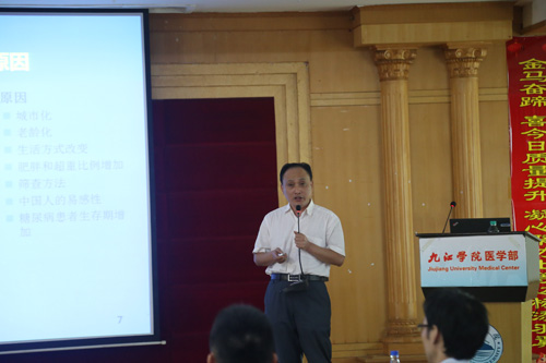 张院长认真听取演讲,并做出小结发表个人看法,他说,此次学术会议内容丰富而精彩,都是各位专家结合各自丰富的临床经验得出的,希望大家对“三高”秉持认真负责的态度,能有更多的时间把患者管理好,临床医学院/附属医院有责任与九江市的社区服务站一同把“三高”控制好,努力提高九江市老年患者的生活质量。