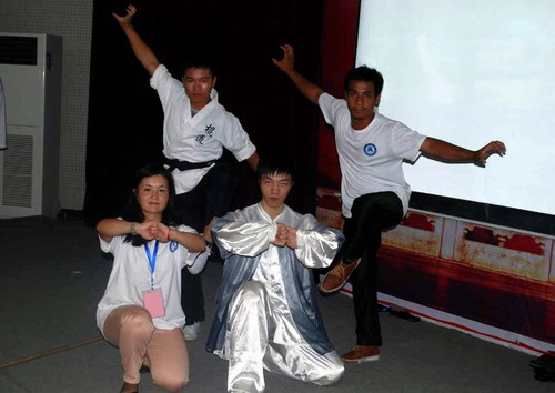 和各国朋友们在湖北黄冈表演武术