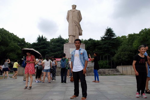 在湖南和毛泽东像的合影