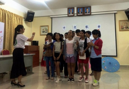 10月9日,柬埔寨王家研究院孔子学院每周文化活动——中文歌曲联谊会在孔子学院大楼二楼多媒体放映室举行。孔子学院中方院长出席本次活动,活动由汉语教师志愿者方茜、岑菊妹组织,汉语教师志愿者、孔子学院学员约70余人参加了联谊会。