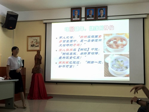 10月22日,柬埔寨王家研究院孔子学院在孔子学院大楼多媒体放映室举行中国文化节系列活动之“舌尖上的中国”,本次活动由汉语教师志愿者宋文婷老师组织并主讲,孔子学院汉语教师志愿者及学员共约100余人参加。
