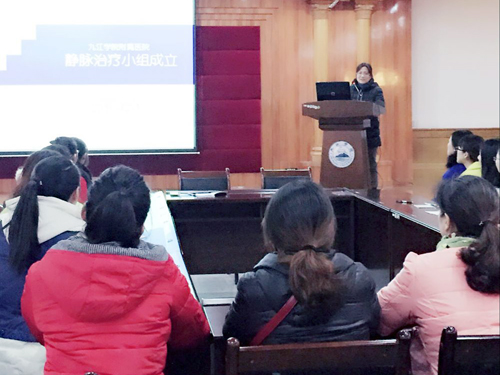 临床医学院/附属医院静脉治疗小组将认真落实国家卫计委的《静脉治疗护理技术操作规范》行业标准,以江西省护理学会编制写的《静脉输液治疗护理应用手册》为指南,从病人的评估、输液工具的选择、技术操作规范、导管的维护,并发症的预防及处理,职业防护及健康教育等方面进行培训、落实行业标准、提升护理技术水平。期望通过静脉治疗小组活动,达成理念的更新,将静脉治疗由单纯的技术操作发展成静脉治疗体系,由被动的输液转变至安全、有效、专业的主动输液治疗,逐步建立一支专业化的静脉输液队伍,提高护理品质,促进临床医学院/附属医院护理学科的发展。