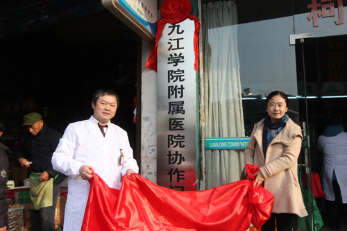 上午9时,临床医学院/附属医院欧阳副院长和白水湖街道李家垅社区柯善栋站长一起为“九江学院附属医院协作门诊”揭牌。