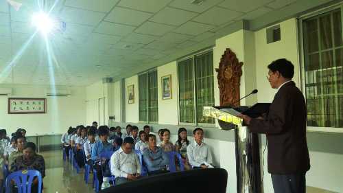 帅式毅院长鼓励大家要利用好电子图书馆,继续学习汉语,多到孔子学院本部来查询有关资料,希望不久将来柬埔寨也可以建立自己的电子图书数据库,让世界上更多的人了解柬埔寨优秀的历史、文化。