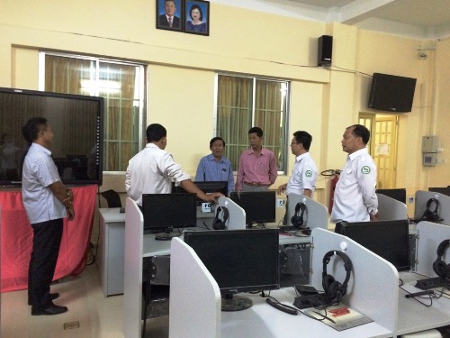 会后,在谢莫尼勒阁下和中方院长帅式毅陪同下,校长们参观了孔子学院电子图书馆及孔子学院大楼改造工地。帅式毅院长介绍说,孔子学院学生在柬埔寨也能共享中方承办院校九江学院的所有电子图书,并查阅有关资料。谢莫尼勒阁下介绍了示范孔子学院大楼改建的思路,并邀请校长们到时参加示范孔子学院的揭牌仪式。
