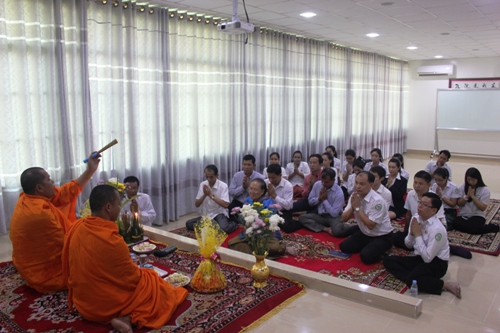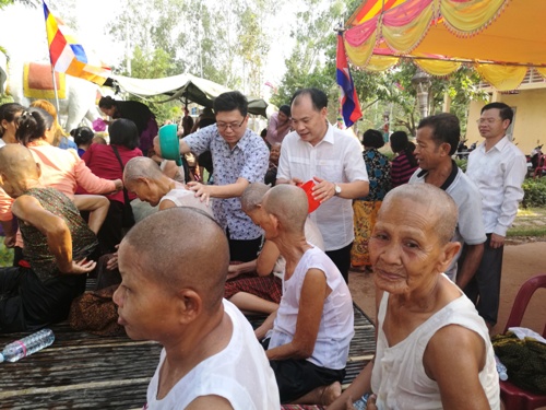 4月9日,谢莫尼勒阁下和帅式毅院长陪同孔子学院理事长、王家研究院院长克洛媞达院士(Academician KHLOT Thyda)参加了茶胶省佛寺的祈福和为老人沐浴的活动。帅式毅院长参加活动后表不,柬新年为长辈沐浴是一种非常好的美德。