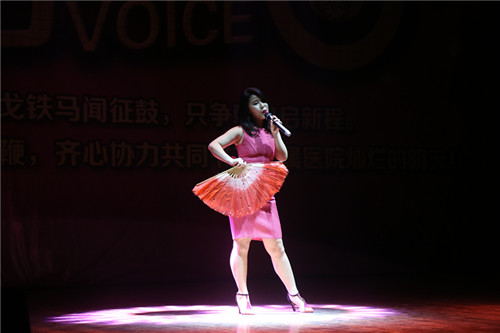 颁奖结束后,口腔医院护士伍佩佩一曲歌曲串烧《痒》、《魔鬼身材》拉开了“附院好声音”决赛盛典的序幕,本次“附院好声音”歌曲大赛从初赛、复赛到决赛,历时将近一个月时间,经过层层选拔,共有12位选手从200余名参赛选手中脱颖而出,将在本次决赛舞台评比出最终结果。
